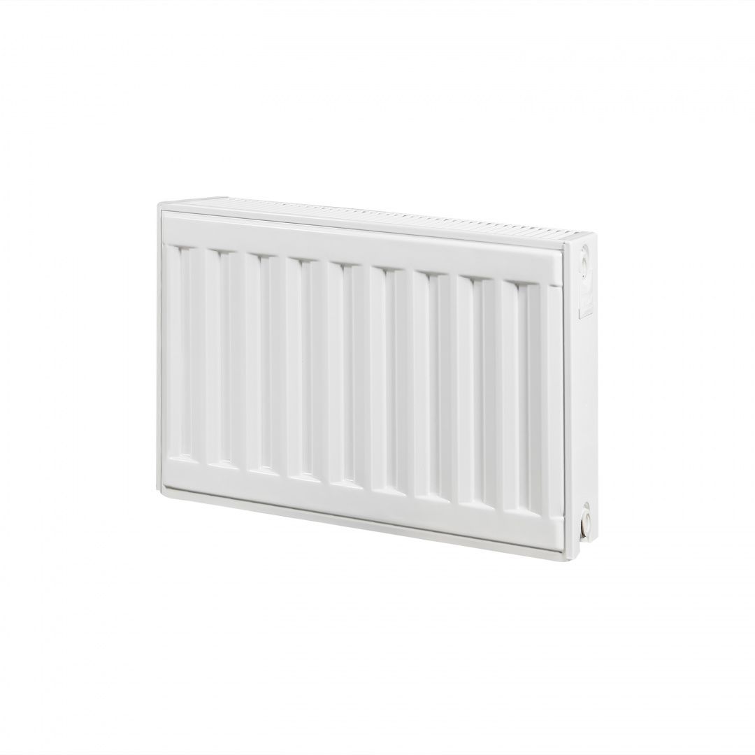 Радіатор сталевий Imas 22-К 300х500 нижнє підмикання — сучасний опалювальний прилад, призначений для роботи у складі автономної системи опалення із природною або примусовою циркуляцією теплоносія. Виріб поставляється разом термостатичним клапаном, краном Маєвського та деталями для кріплення на стіну. Панельний радіатор 22 типу складається з двох панелей, якими рухається енергоносій і двох гофрованих ребер, що збільшують площу тепловіддачі.