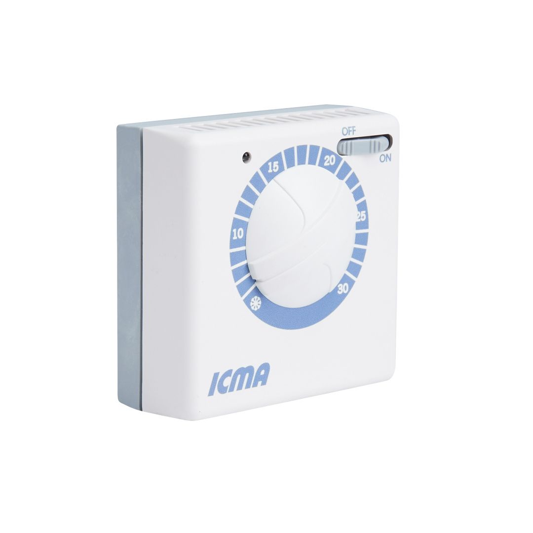 Електромеханічний кімнатний термостат ICMA Арт. P311 є найпростішим пристроєм для точного і невідкладного регулювання кімнатної температури. Поворот ручки на необхідне температурне значення, це все що потрібно для того, щоб адаптувати кімнатну температуру під особисті потреби. Регулювання 5°C - 30°C.