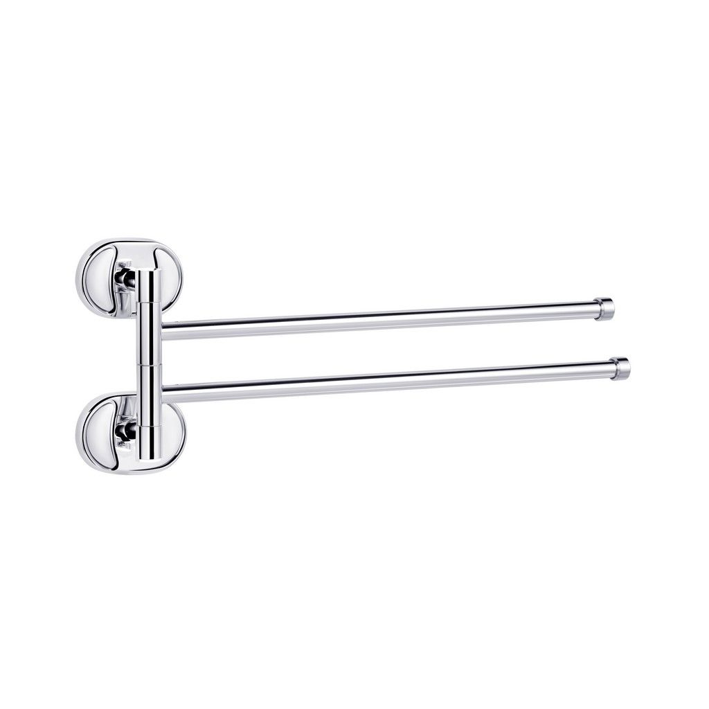 Подвійний тримач для рушників Kroner KRM Elbe - ACC2912 стане оригінальним доповненням ванної кімнати. Тримач для рушників виготовлений із міцного металу з хромованою поверхнею й має два поворотних стрижні, на які можна розмістити два рушники. Довжина виробу 375 мм. Приховане кріплення дає змогу зберегти оздобу, а хромоване покриття запобіжить утворенню корозії та бруду. Тримач для рушників кріпиться на стіні на бажаній висоті.