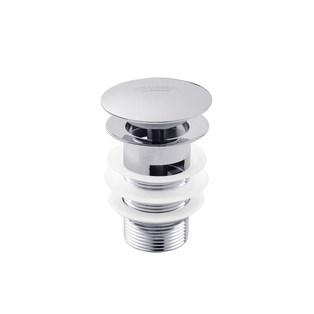 Донний клапан для раковини Kroner KRM - C962 1 1/4" з переливом виконаний з латуні в хромованому кольорі, що дає можливість поєднувати його з раковинами з таким же покриттям. Виріб дозволить перекрити зливний отвір у разі потреби та використовувати раковину як таз, а наявність переливу убереже вас від потопу, якщо ви ненадовго відволіклися під час набирання води.