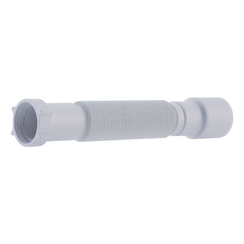 Гибкая труба ANI PLAST К106 выполнена из пластика классического белого цвета в виде прямой трубы, которая благодаря наличию гофры может изменять угол и длину от 366 мм до 776 мм. Изделие обладает небольшим весом, поэтому устанавливается без особых усилий и дополнительного приспособления. Благодаря материалу изготовления труба имеет длительный срок эксплуатации, устойчива к образованию коррозии и затворов, высоким температурам и химическим средствам.