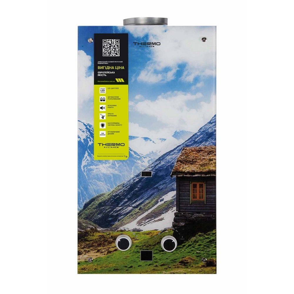 Колонка газова димохідна Thermo Alliance JSD20-10GC 10 л панель скляна з малюнком гори