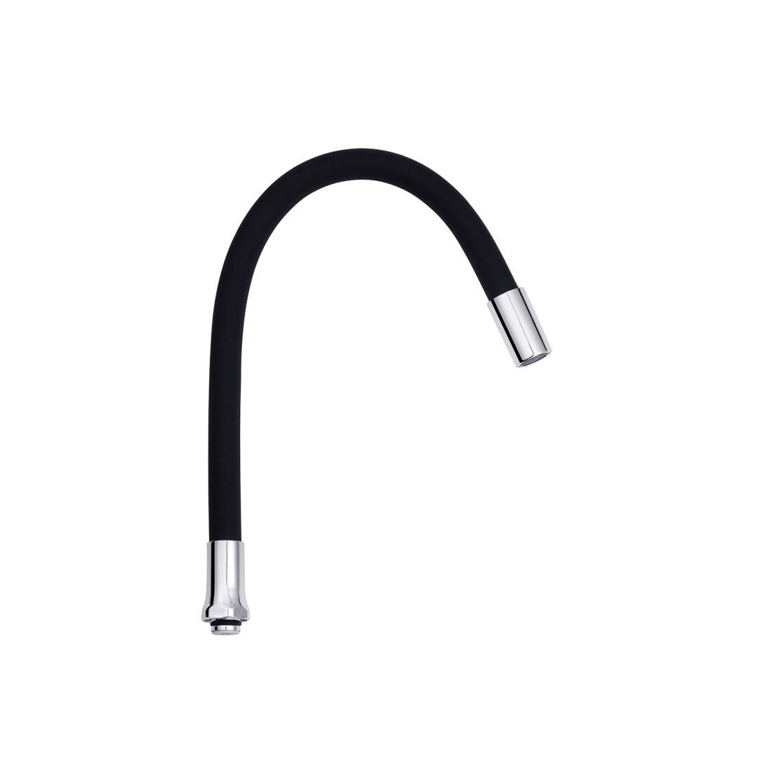Вилив рефлекторний для кухні Kroner KRM - C802RSS призначений для встановлення на корпус змішувача. Для цього в ньому є стандартне різьбове з'єднання 3/4" з кільцями ущільнювачів, що забезпечують максимальну герметичність з'єднання. Виготовлений з силуміну з силіконовим покриттям чорного кольору. Завдяки гнучкій конструкції виливу можна встановити довільну висоту.