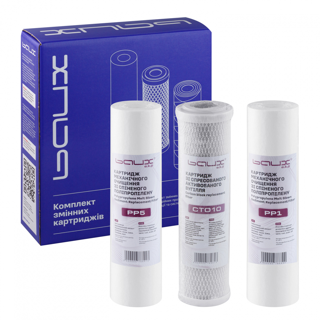 Інвестуйте в чистоту та безпеку вашої води – вибирайте комплект змінних картриджів Baux.