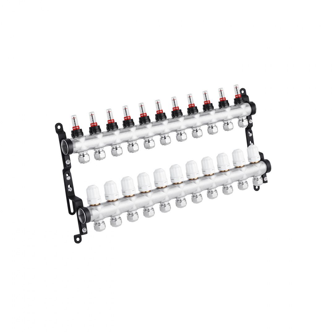 Колектор в зборі STA "Classic" G1" з євроконусами на 11 контурів, нержавіюча сталь - це гідравлічний компонент, призначений для розподілу теплоносія чи питної води (технічної) в системах опалення чи водопостачання з двома контурами. Цей колектор виготовлений з нержавіючої сталі, що забезпечує його високу міцність і стійкість до корозії.
