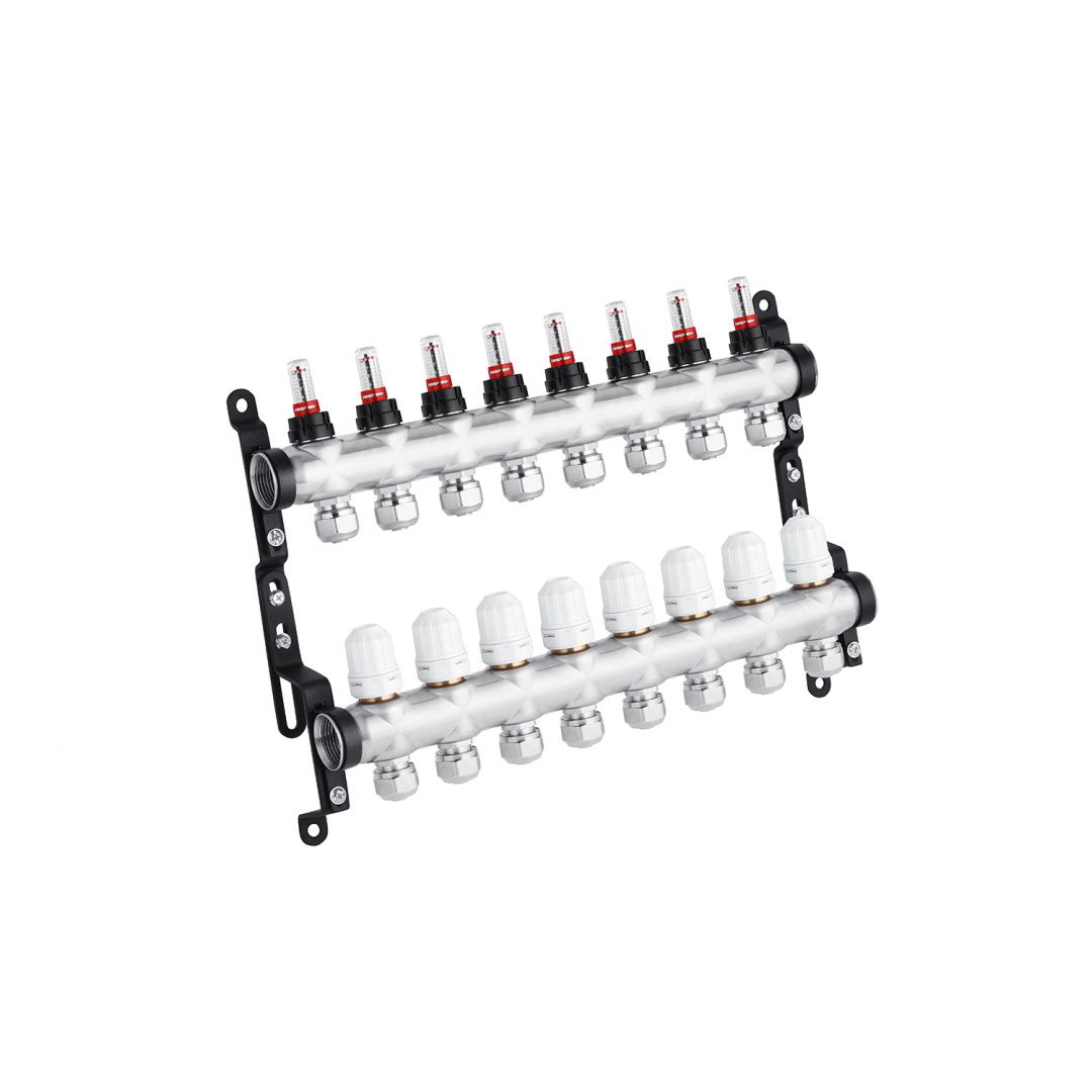 Колектор в зборі STA "Classic" G1" з євроконусами на 8 контурів, нержавіюча сталь - це гідравлічний компонент, призначений для розподілу теплоносія чи питної води (технічної) в системах опалення чи водопостачання з двома контурами. Цей колектор виготовлений з нержавіючої сталі, що забезпечує його високу міцність і стійкість до корозії.