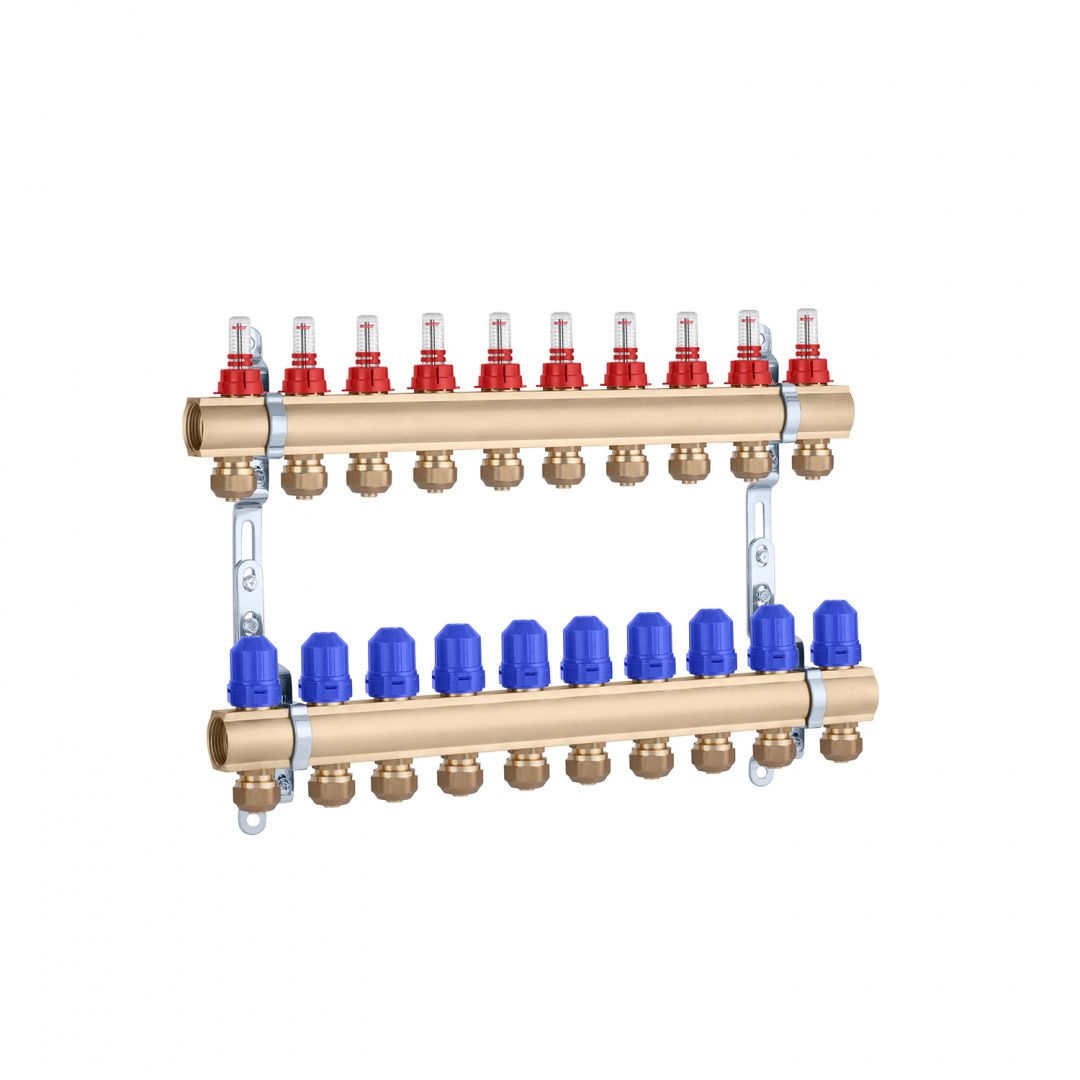 Колектор в зборі STA на 10 виходів 1"х3/4" з євроконусами, латунний