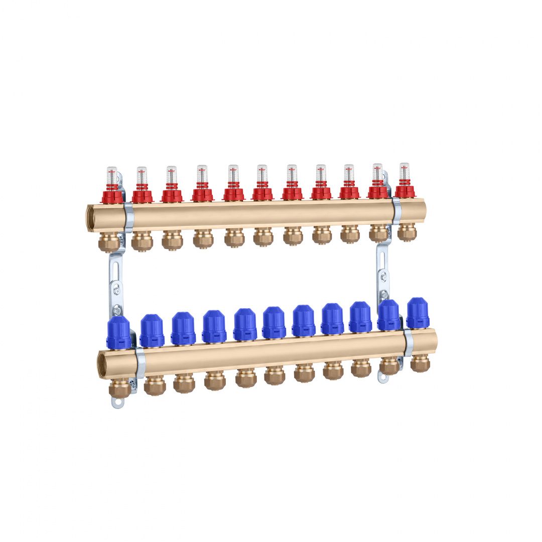 Колектор в зборі STA на 11 виходів 1"х3/4" з євроконусами, латунний