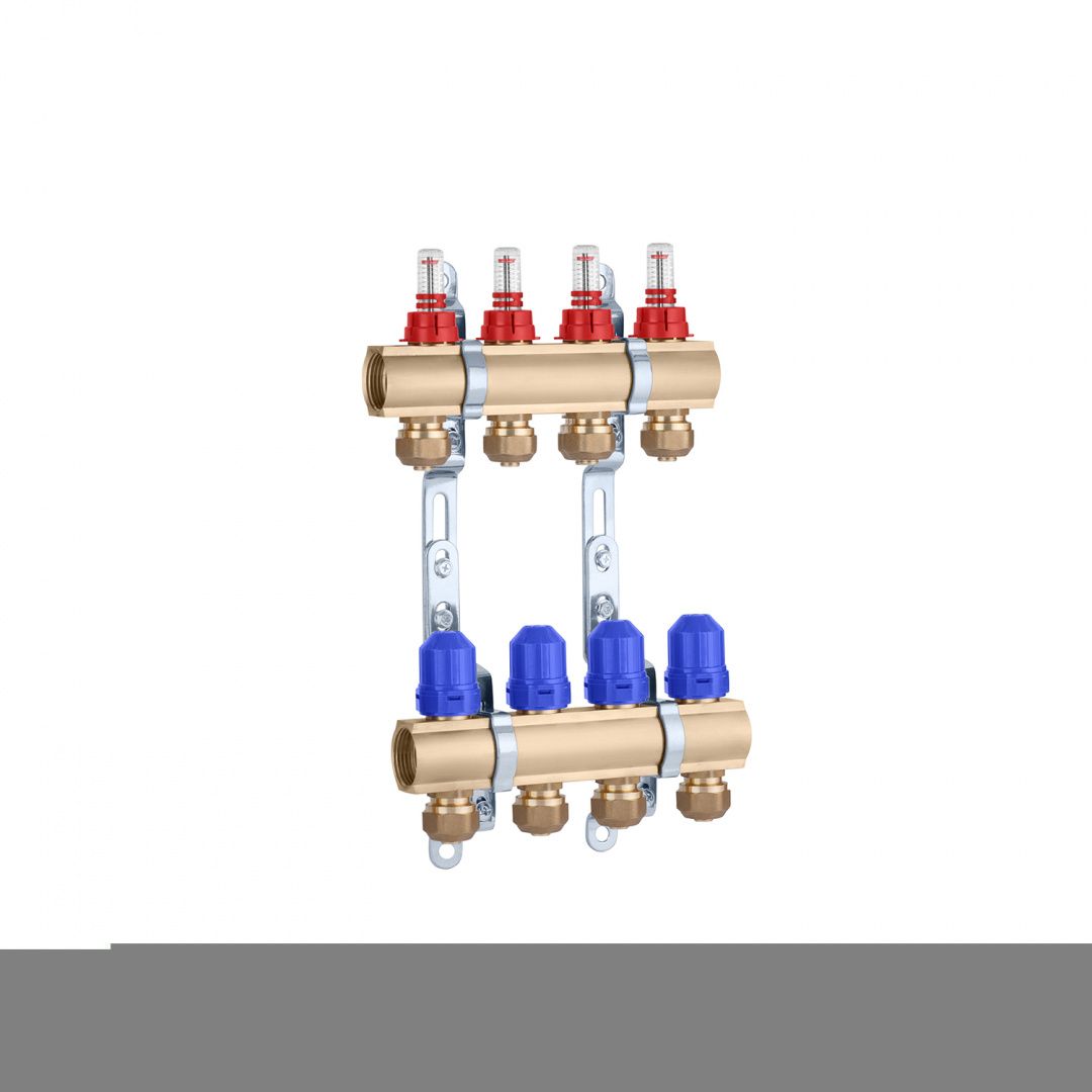 Колектор в зборі STA 1"х3/4" з євроконусами на 4 контури, латунний - це гідравлічний компонент, який використовується для розподілу теплоносія чи питної води (технічної) в системах опалення чи водопостачання з трьома окремими контурами. Кожен контур на цьому колекторі має євроконуси, що дозволяють підключати та регулювати потік теплоносія в кожному контурі окремо.