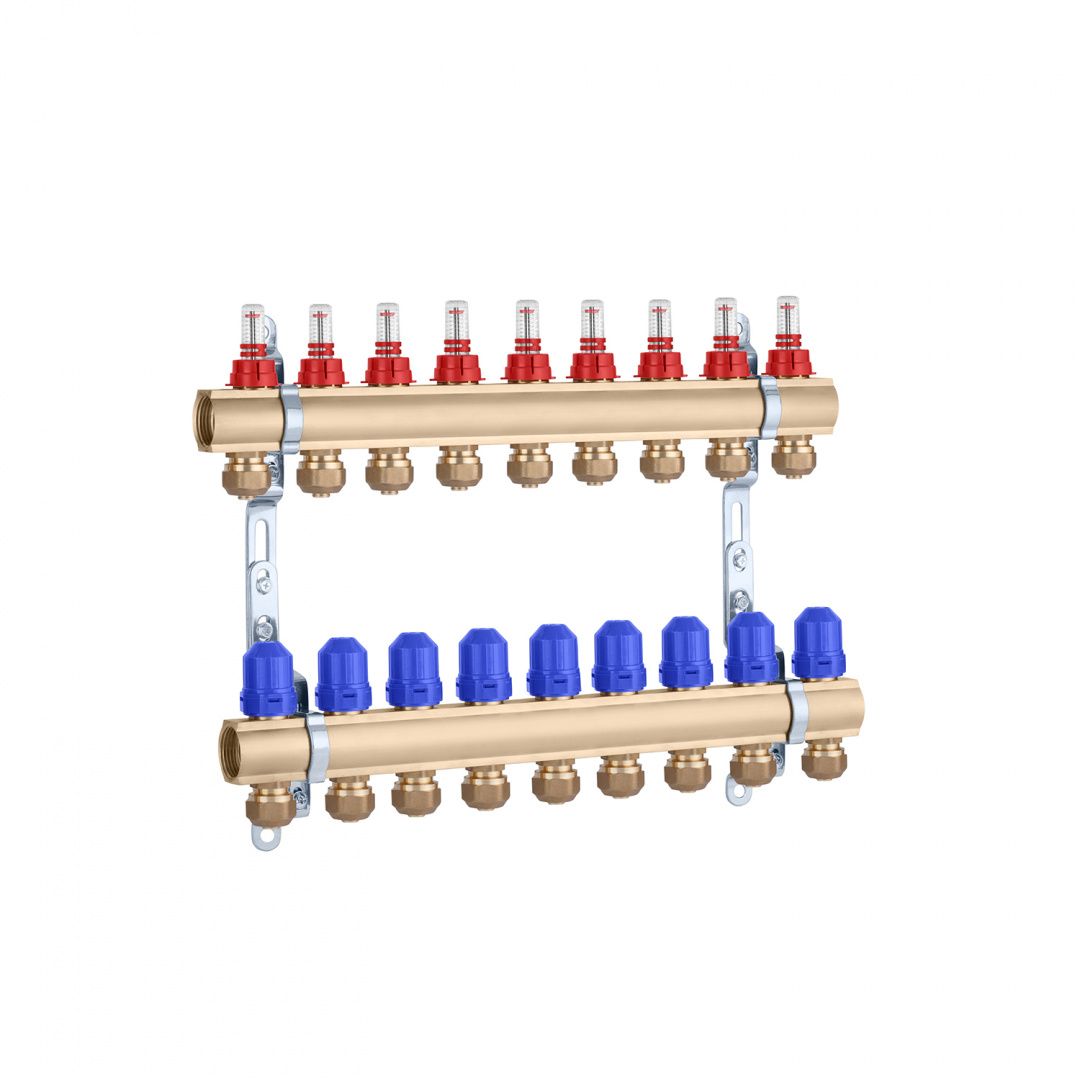 Колектор в зборі STA на 9 виходів 1"х3/4" з євроконусами, латунний