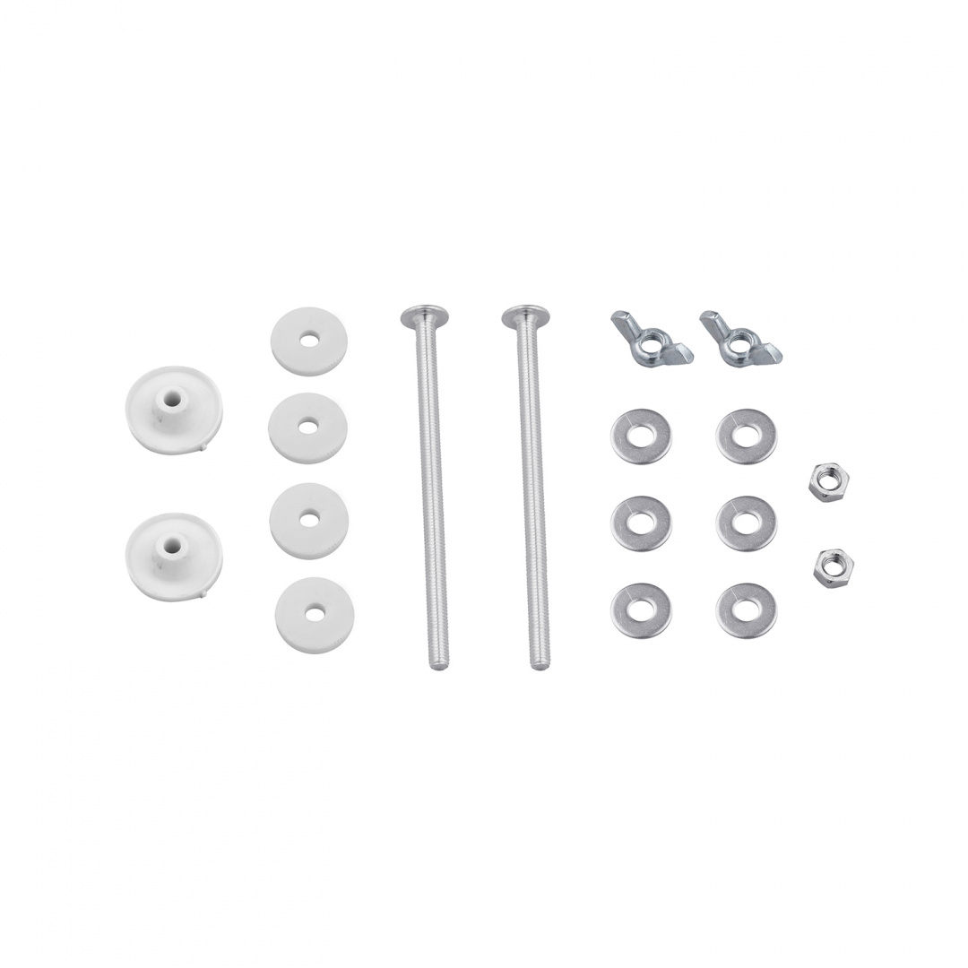 Комплект забезпечує щільне з'єднання бачка з чашею унітаза, запобігає люфту і протіканню. Підходить для більшості стандартних моделей унітазів з відстанню між кріпильними отворами 100 мм.