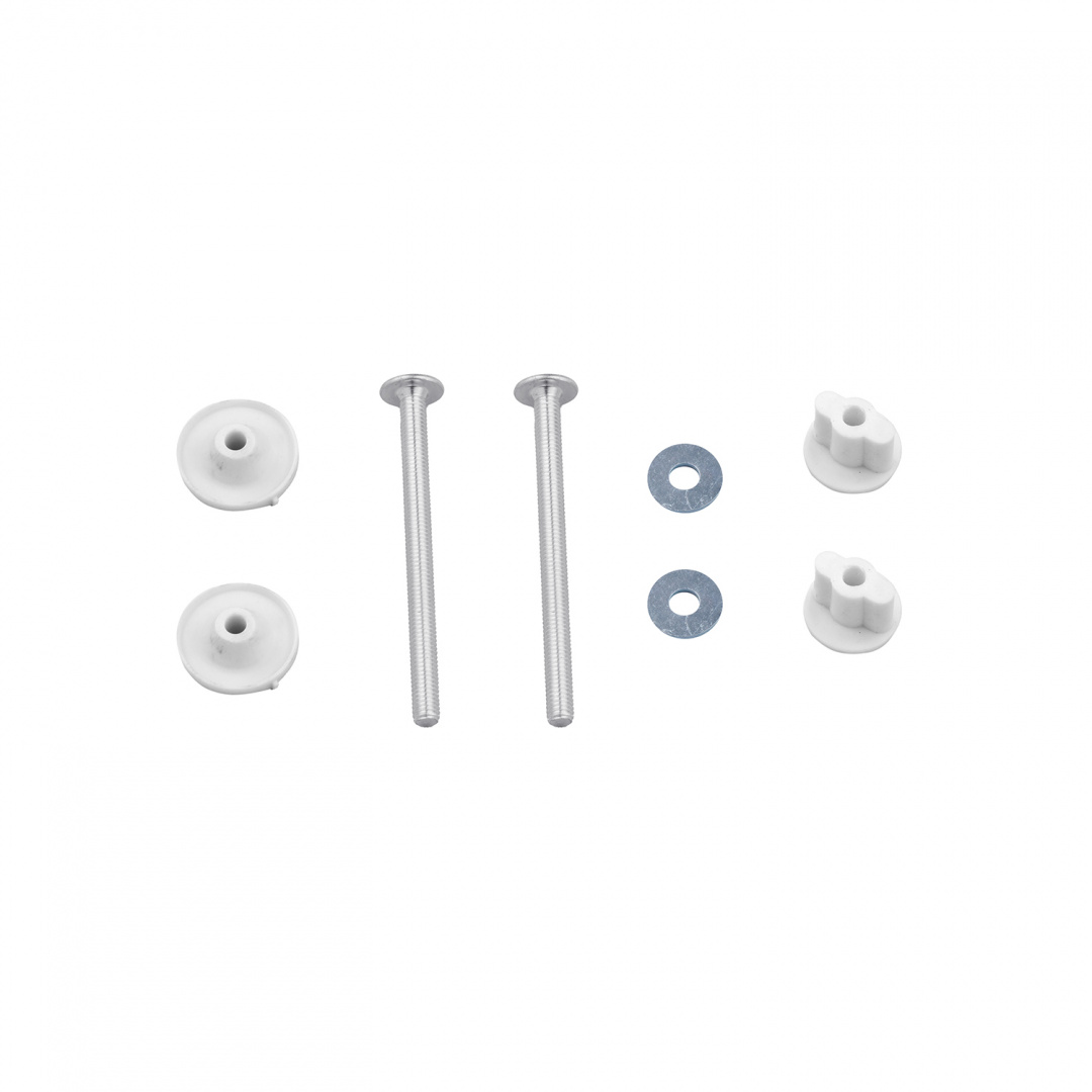 Комплект забезпечує щільну установку бачка без люфтів і знижує ризик протікання. Підходить для більшості моделей унітазів з відстанню між кріпильними отворами 84 мм. Простий в монтажі та обслуговуванні.
