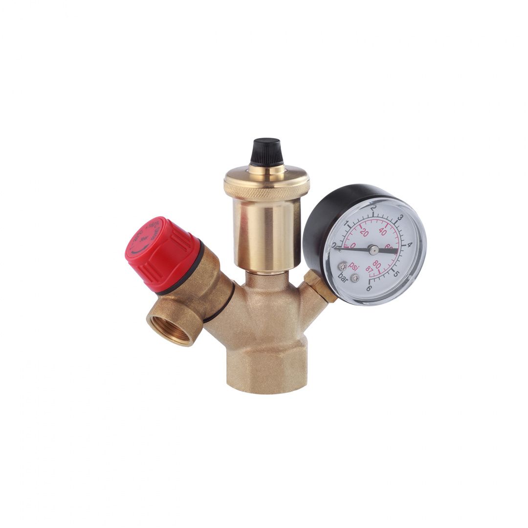 Автоматичний повітровідвідник, запобіжний клапан, манометр.