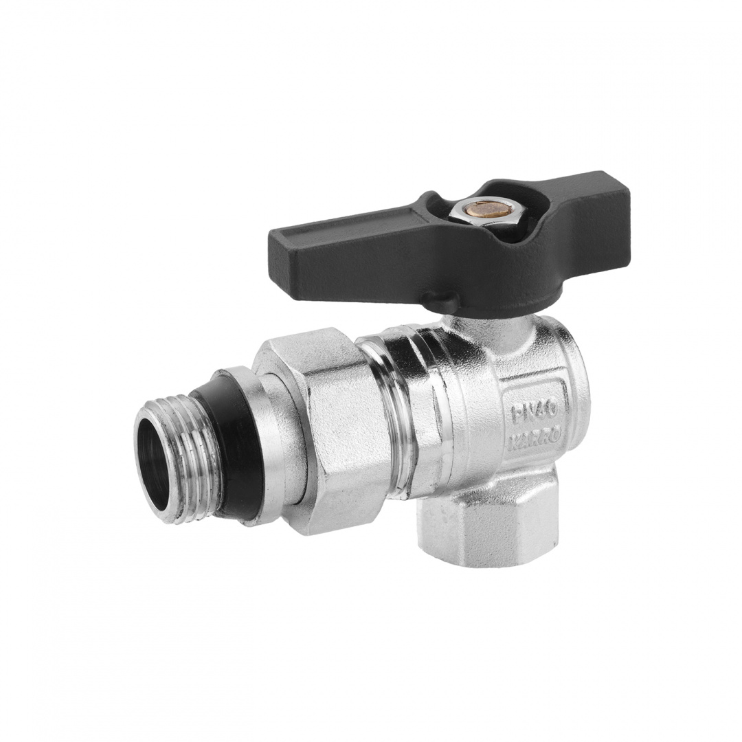 Кран-американка кульовий кутовий з антипротечкою Karro UNO 1/2" ВЗ, PN40, ручка «метелик»