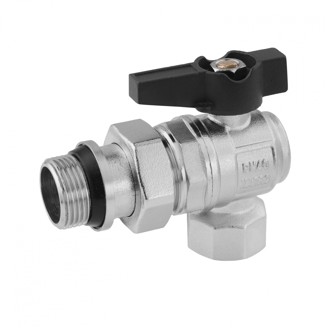 Кран-американка кульовий кутовий з антипротечкою Karro UNO 3/4" ВЗ, PN40, ручка «метелик»