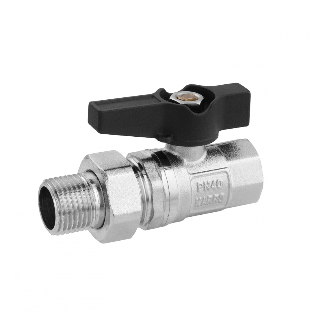 Кран-американка кульовий прямий Karro UNO 1/2" ВЗ PN40, ручка «метелик»
