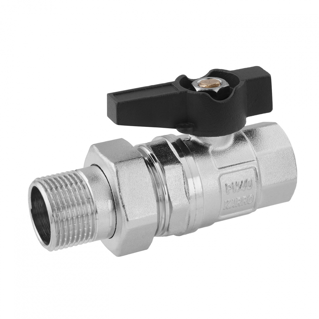 Кран-американка кульовий прямий Karro UNO 3/4" ВЗ PN40, ручка «метелик»