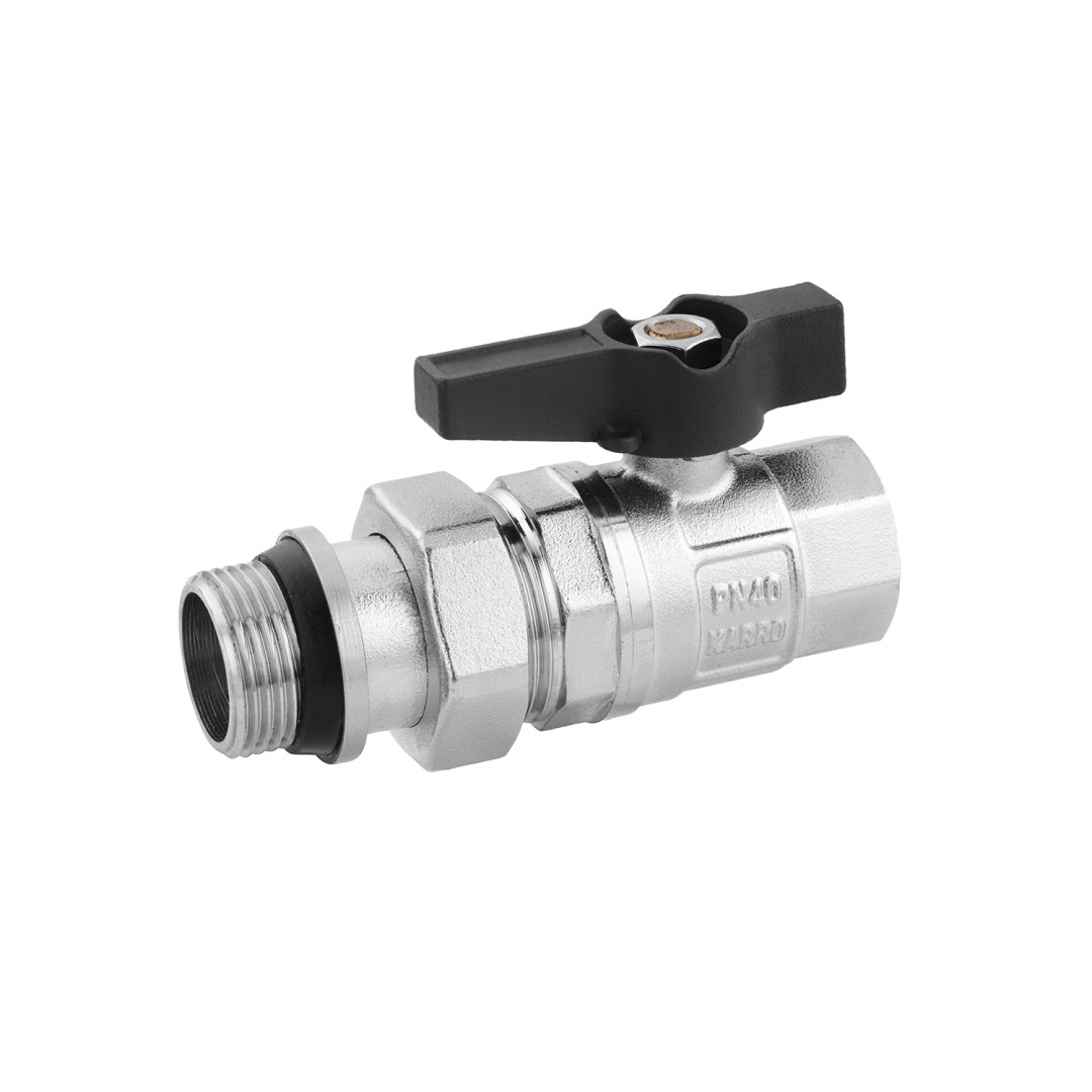 Кран-американка кульовий прямий з антипротіканням Karro "Uno Black" 3/4" ВЗ PN40, ручка «метелик»