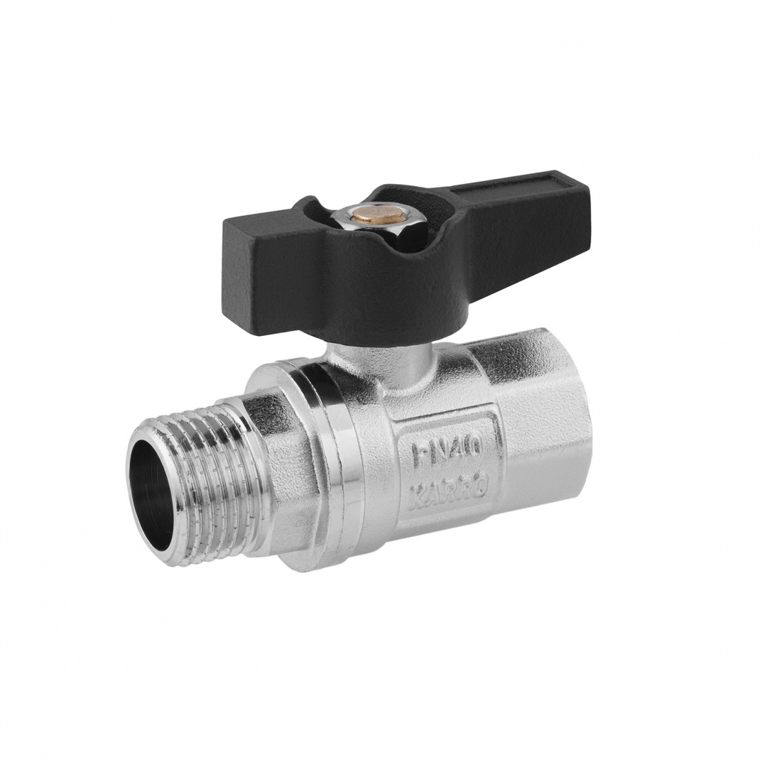 Кульовий кран Karro UNO 1/2" з внутрішнім/зовнішнім різьбленням (ВЗ) Black, та нікельованим покриттям — надійне рішення для перекриття потоку рідин у системах гарячого та холодного водопостачання, стисненого повітря та рідких вуглеводнів. Виготовлений із високоякісної латуні CW617N, він забезпечує тривалий термін служби та високий рівень герметичності.