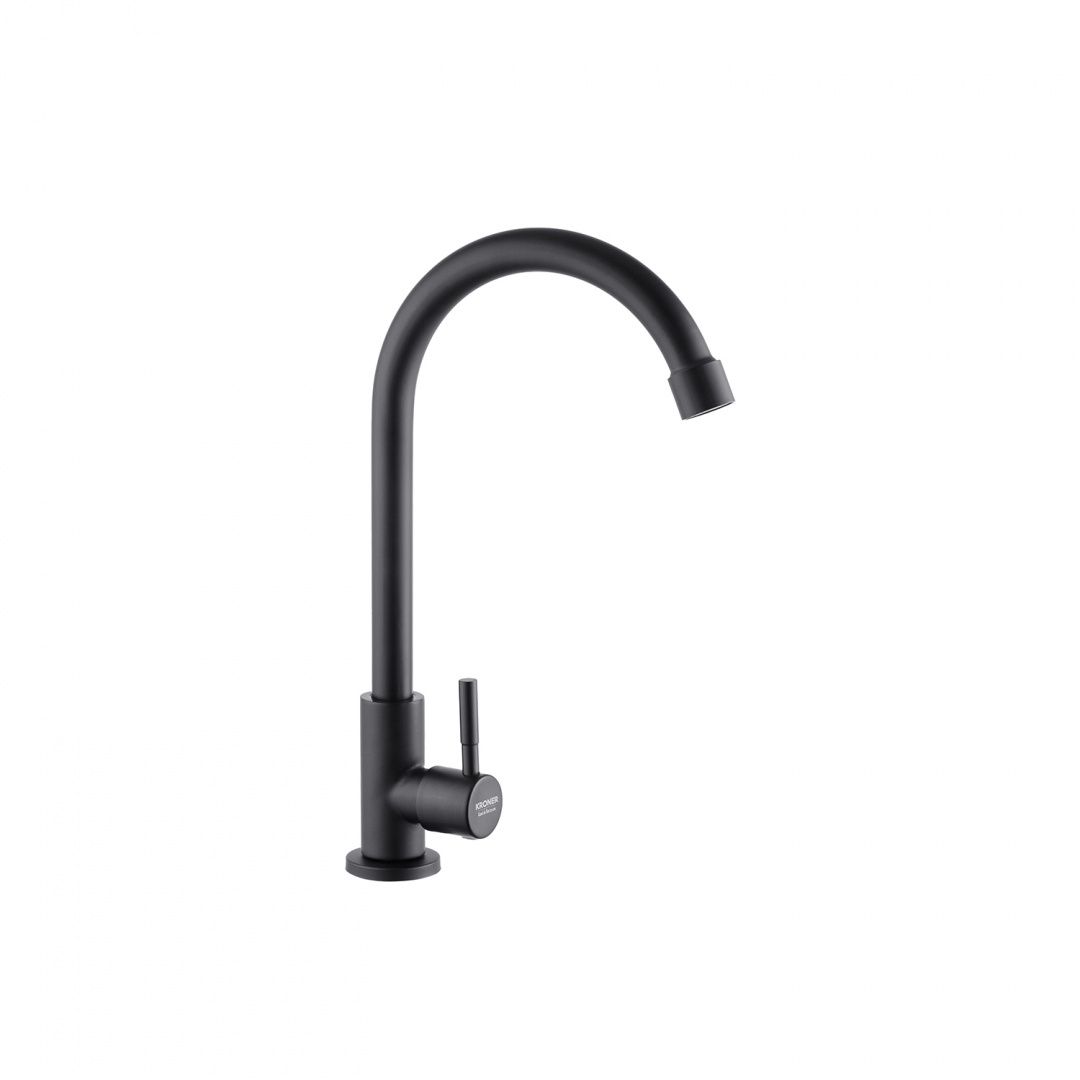 Кран Kroner KRP Edelstahl Klassisch - SCH098 має сучасний та елегантний дизайн, який чудово доповнить інтер'єр вашої кухні. Чорна матова поверхня надає крану сучасного вигляду, при цьому додаючи трохи елегантності.