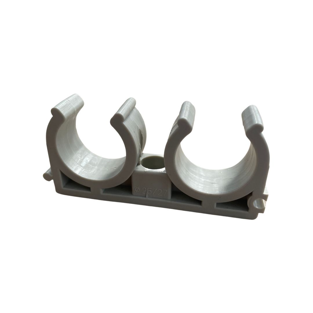 Подвійне кріплення PPR Thermo Alliance 25 виготовлене з високоякісного поліпропілену, завдяки чому термостійке і виглядає естетично. Саме тому його частіше застосовують під час монтажу водопроводу з гарячою та холодною водою. Кріплення складається з плоскої основи з отворами для шурупів та двох U-подібних скоб для фіксації на стіні труб діаметром 25 мм.
