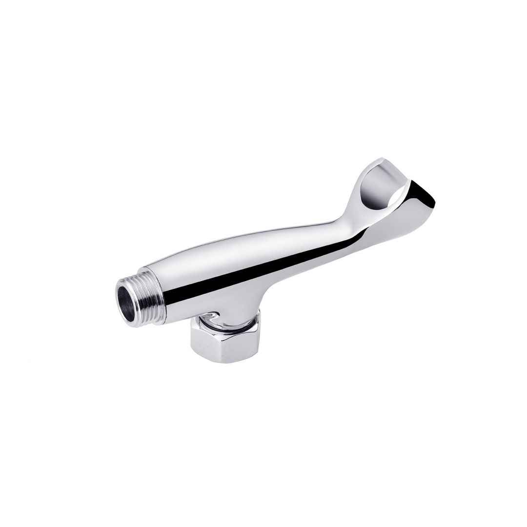 Кронштейн для ручного душу Kroner KRM - C919 хромований, завдяки чому виріб стійкий до подряпин, дії агресивних миючих засобів, утворення корозії та зносу. Він кріпиться до змішувача, складається з довгастого корпусу, підведення із зовнішнім різьбленням і універсальним діаметром 1/2" для підключення шланга, а також тримача для лійки.