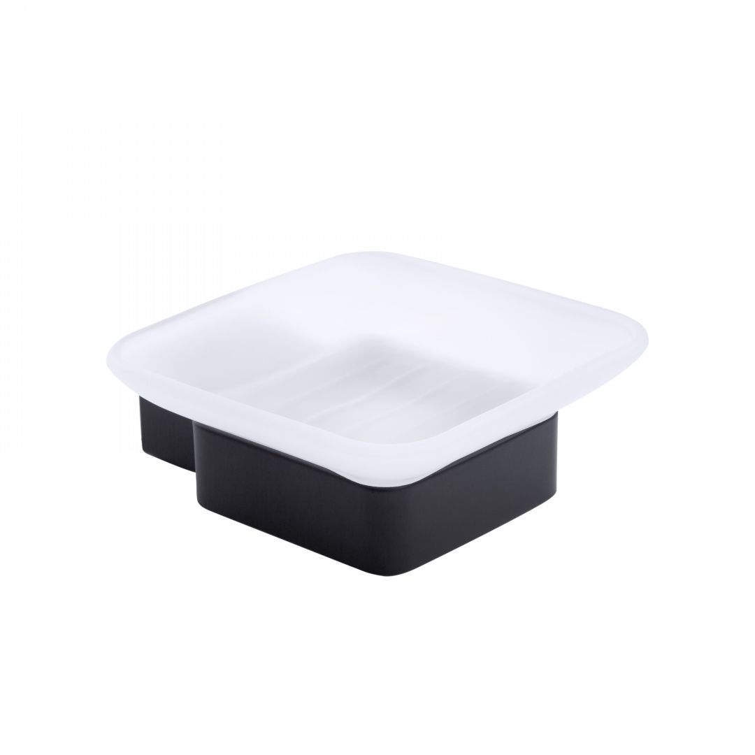 Мильниця Kroner KRP Edelstahl Kubus - SCH3902 міцно кріпиться до стіни, містить тримач та скляну чашу. Виріб виготовлений із якісного та довговічного металу з чорним матовим покриттям. Мильниця знімна, завдяки чому догляд за нею буде простим і легким. У виробі використовуються ущільнювальне кільце (прокладка), необхідне для щільного з'єднання металу та скла, що також перешкоджають виникненню шуму внаслідок зіткнення частин виробу. На тримач нанесений фірмовий логотип компанії.