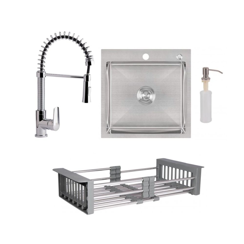 Набір для кухні Tenso 2 в 1 зі змішувачем для кухні з витяжним виливом (QTTENCRM013F + LIDZH5050BRU3010) хром