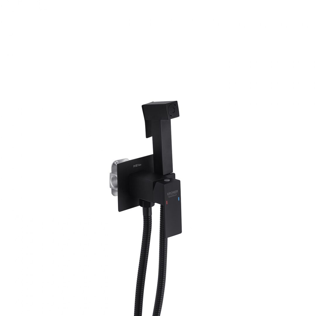 Набір для гігієнічного душу прихованого монтажу зі змішувачем Kroner KRP Edelstahl Kubus - SCH053 (чорний) — елегантне рішення для сучасної ванної кімнати з акцентом на стиль і мінімалізм.