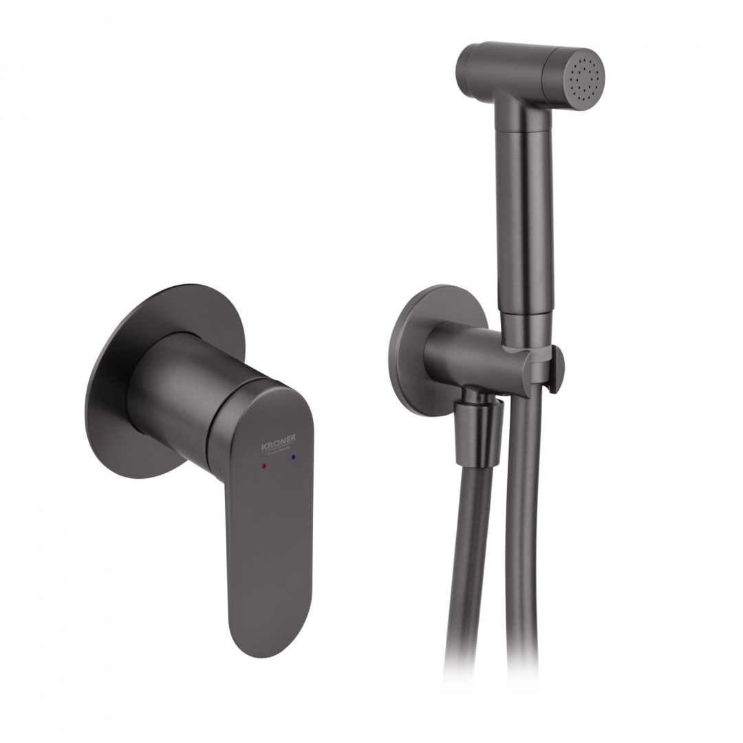 Набір для гігієнічного душу зі змішувачем прихованого монтажу Kroner Element 211234-5301 (графіт) — сучасне і практичне рішення для ванної кімнати, виконане в стильному графітовому кольорі з матовим покриттям. Таке виконання підкреслює актуальний дизайн інтер'єру та ідеально підходить для просторів у стилі мінімалізм, лофт або модерн.