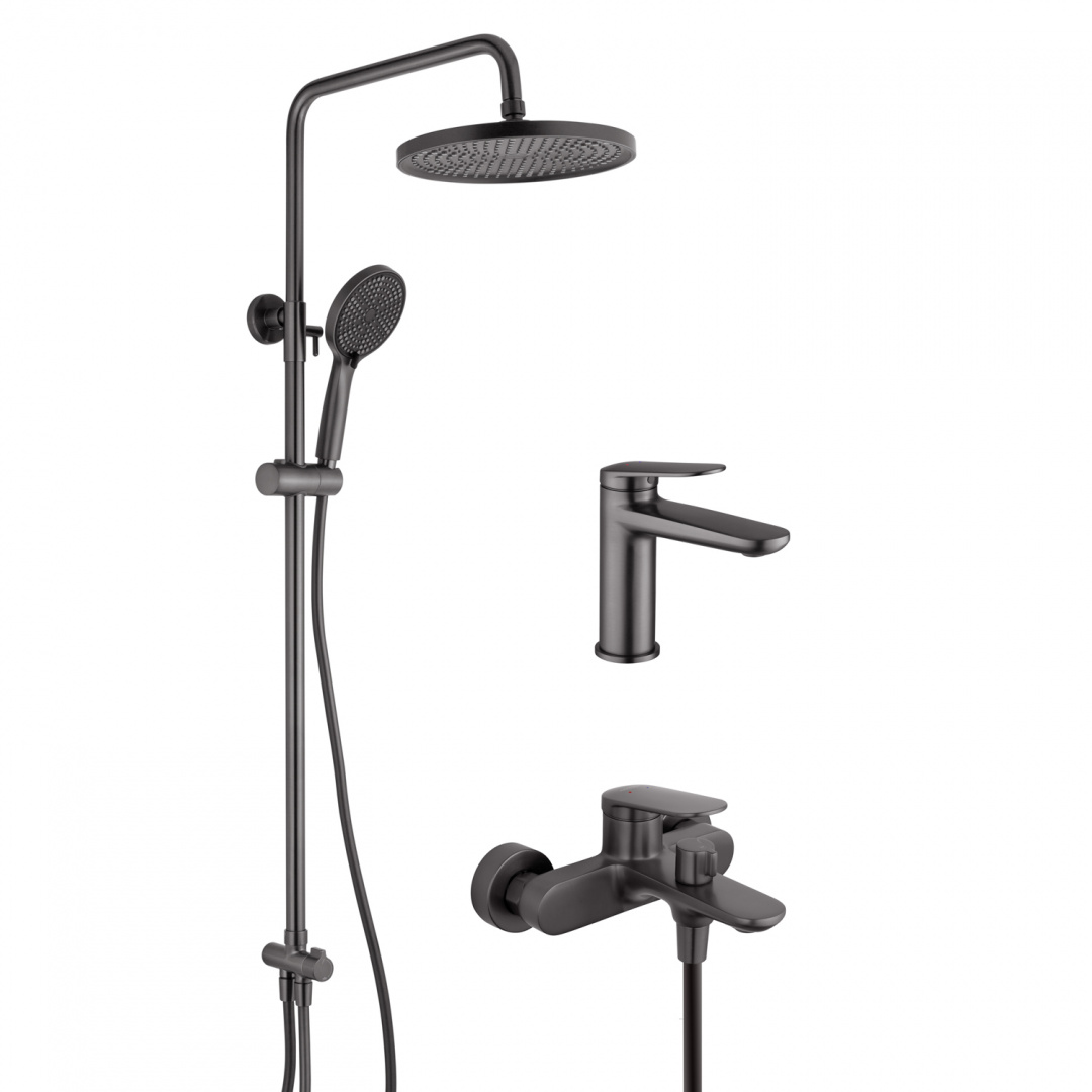 У комплект входить душова система і змішувач, що дозволяє створити єдиний і гармонійний простір без необхідності підбору окремих елементів. Матова поверхня стійка до слідів води та відбитків пальців, легко очищається і довго зберігає акуратний зовнішній вигляд.