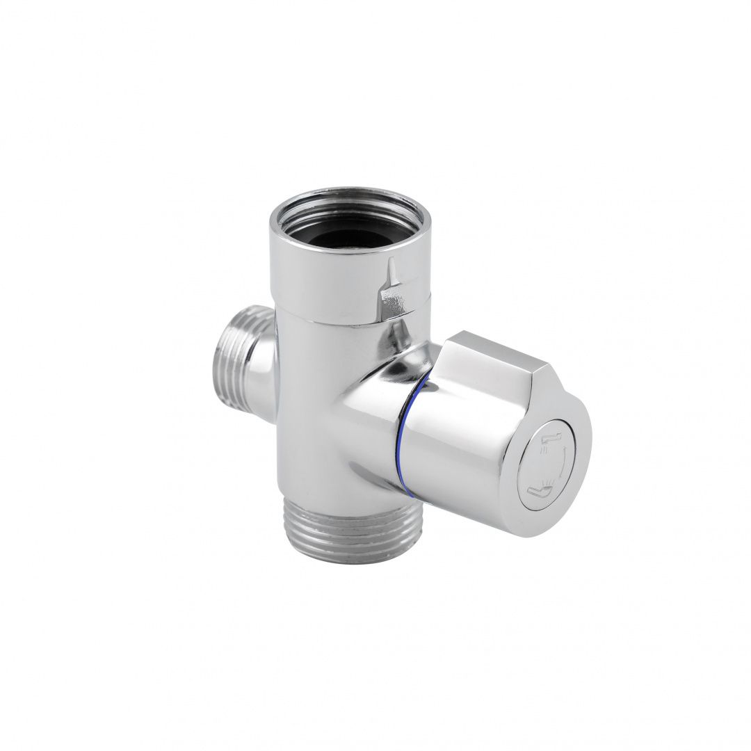 Корпус виробу виконаний з латуні, що забезпечує високу міцність, стійкість до корозії та довговічність при постійному контакті з водою. Хромоване покриття захищає поверхню від зовнішніх впливів і надає дивертору акуратний зовнішній вигляд, що гармонійно поєднується з більшістю змішувачів.