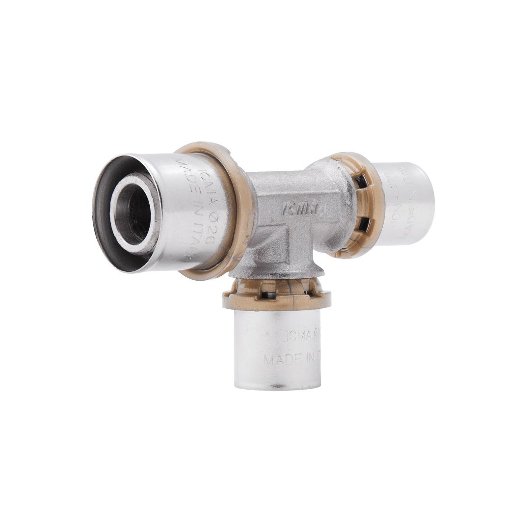Прес-фітинг трійник Sempiter призначений для металопластикової труби для монтажу з радіальним пресуванням. Застосовується в системах водопостачання, опалення, і охолодження. Окремий прес на кожен діаметр труби стискає гільзу з нержавіючої сталі, яка надійно фіксує трубу на фітингу. Механічне з'єднання забезпечує спеціальний профіль фітинга і гільзи з нержавіючої сталі, які були розроблені спеціально для того, щоб пресування відбувалося трьома різними профілями.