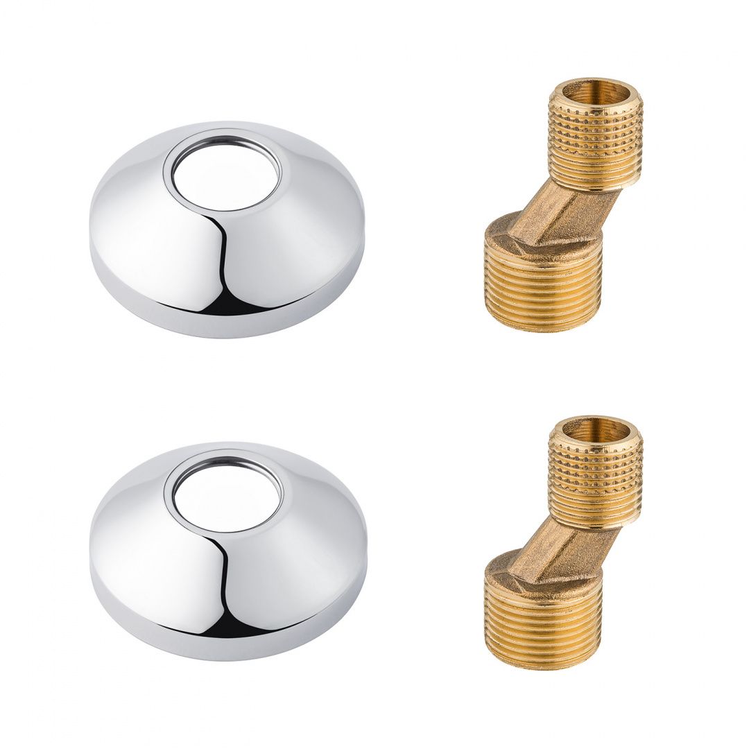 Ексцентрики для регулювання: Ексцентрики 1/2"х3/4" зі зміщеним центром надають унікальну можливість регулювання кріплення змішувача у різних напрямках – вправо, вліво, вгору та вниз. Це дозволяє легко і точно виставити змішувач за вашими уподобаннями та особливостями вашого інтер'єру.