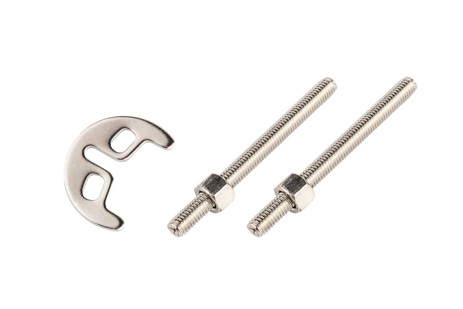 Кріплення для змішувача Kroner KRM - С18 з двома шпильками підійде для гнучкого з‘єднання. Використовується для змішувача. Воно складається з двох латунних шпильок і фігурної пластини з двома отворами. Має брашовану поверхню.