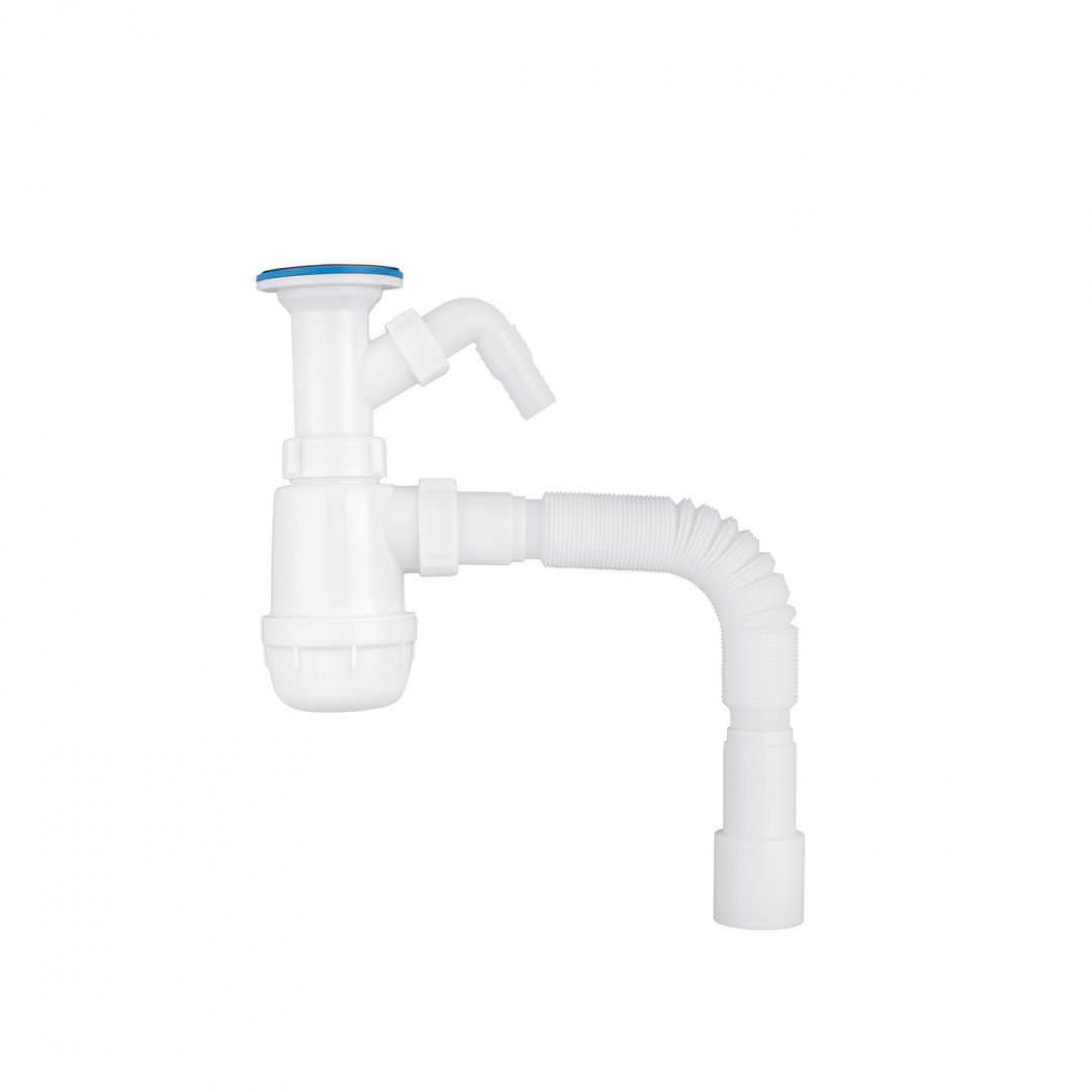 Сифон для кухонної мийки ANIplast 1 1/2''х40 мм з литим випуском, відводом для пральної машини А2015EU