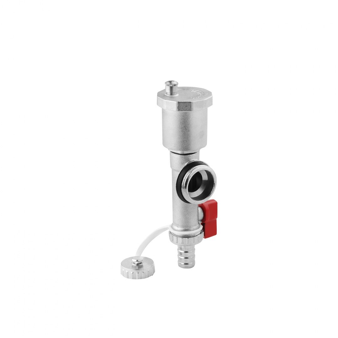 Зливна група для колектора Karro 1" KR-17022 нікельована призначена для розподільних планок теплої підлоги. До нього входить кран Маєвського, кінцевик і зливний кран. Такий набір дає змогу виробу в автоматичному режимі видаляти повітря з системи, яке може з'являтися в теплових контурах унаслідок нагрівання рідини. Зливний кран дає можливість за необхідності видалити теплоносій із системи. Він має спеціальне з'єднання "ялинка", яке призначене для кріплення шланга. За необхідності його можна легко відкрутити від кінцевика для колектора Karro в зборі та закрити кришкою або під'єднати інше пристосування.