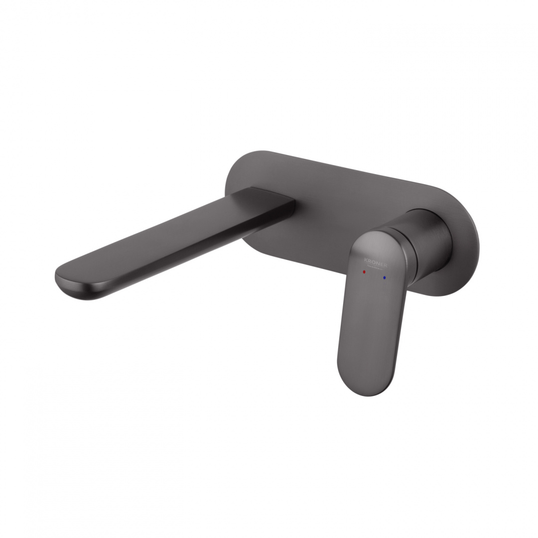 Змішувач прихованого монтажу для раковини Kroner Element 211133B-5301 (графіт) — стильне і сучасне рішення для ванної кімнати в актуальному графітовому кольорі з матовим покриттям. Таке виконання виглядає благородно та елегантно, підкреслюючи сучасний дизайн інтер'єру і створюючи ефект стриманої естетики.