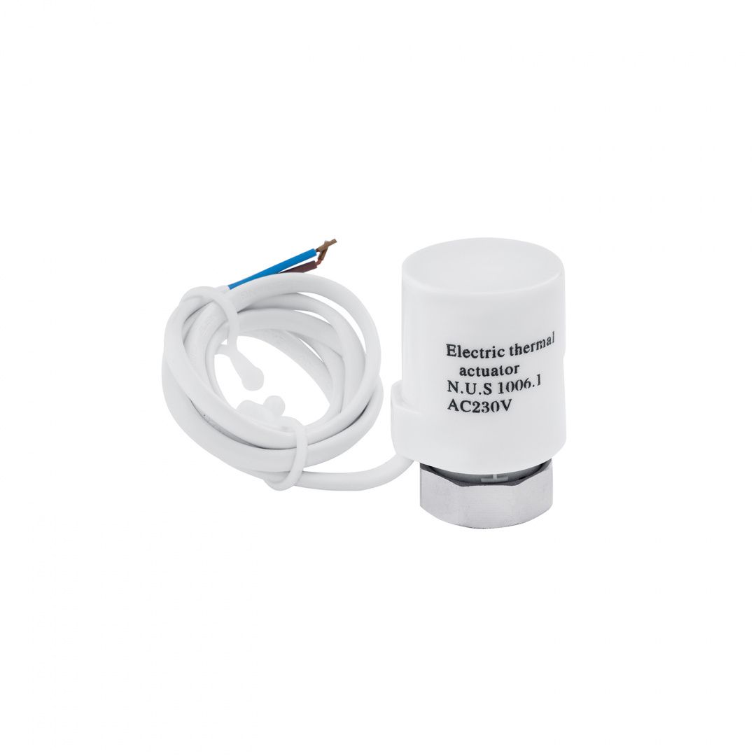 Термоголовка Karro (сервопривід) KR-1037A дає змогу максимально автоматизувати систему опалення. Він встановлюється на колектор теплої підлоги і змінює кількість теплоносія, що надходить у контур. Для цього він під'єднується до блоку керування, який на підставі показників від датчиків регулює всі параметри. Великою перевагою сервоприводу Karro є те, що він умовно відкритий. Це означає, що, якщо на електротермічну головку Карро не надходить напруга, вона відкривається. Це особливо корисно для сільської місцевості, оскільки це дасть змогу опаленню обігрівати оселю в разі пошкодження лінії електропередачі. Діапазон регульованої температури приміщення від 6°С до 28°С. Максимальна допустима температура теплоносія 110°С.