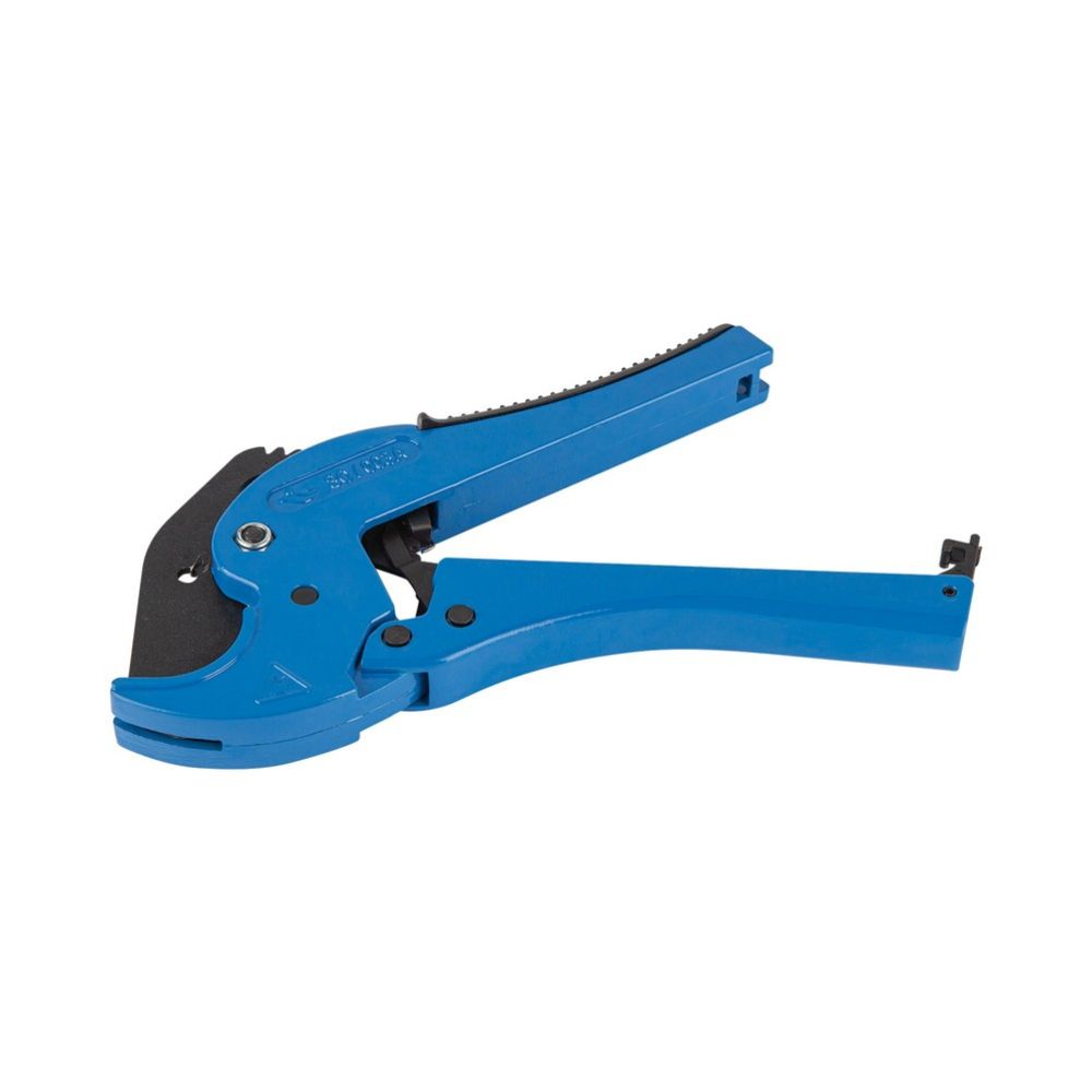 Ножиці для обрізання металопластикових труб Blue Ocean 16-40 виконані з нержавіючої сталі у синьому кольорі з фіксатором, завдяки якому інструмент можна безпечно зберігати та переносити. Дані ножиці підходять для роботи з пластиковими або металопластиковими водопровідними трубами та трубами для встановлення теплої підлоги діаметром до 40 мм. Вони мають невелику вагу, тому під час роботи кисть не втомиться, гостре лезо із загартованої сталі та зубчастий механізм забезпечать рівний зріз. Тип конст