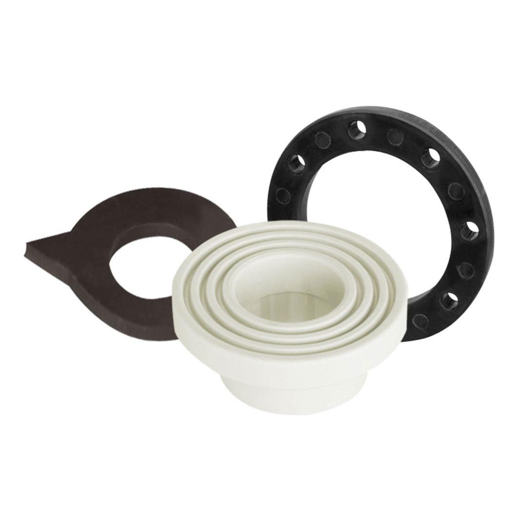 Комплект фланцевого з'єднання Blue Ocean 90 складається з трьох елементів: втулки, фланця і силіконової прокладки. Втулка виконана з поліпропілену в класичному білому кольорі з буртом, в який впирається фланець. Фланець виконаний зі сталі з покриттям Fiber-G і чотирма отворами для з'єднання. Він надягається на втулку з тильного боку, після чого втулку приварюють до труби або запірної арматури. Таке з'єднання гарантує герметичність стику та довговічність магістрального трубопроводу.